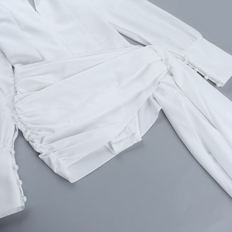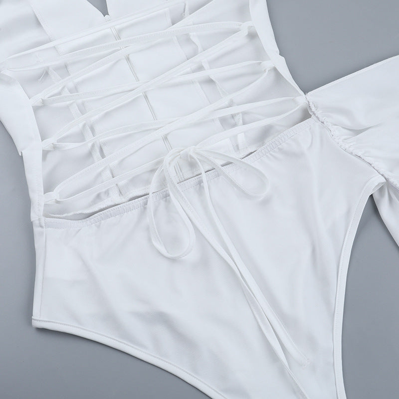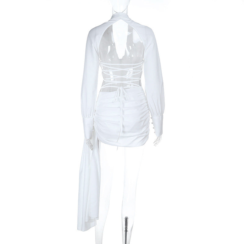Backless Lace up Long-Sleeved Hip Dress