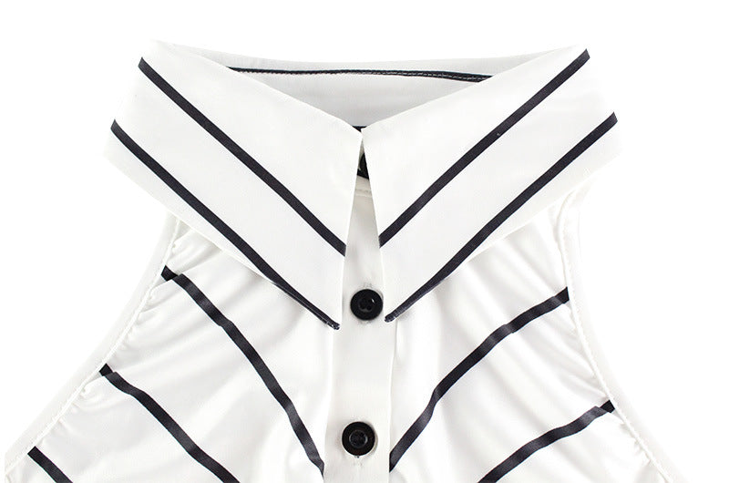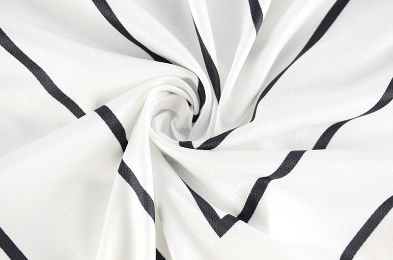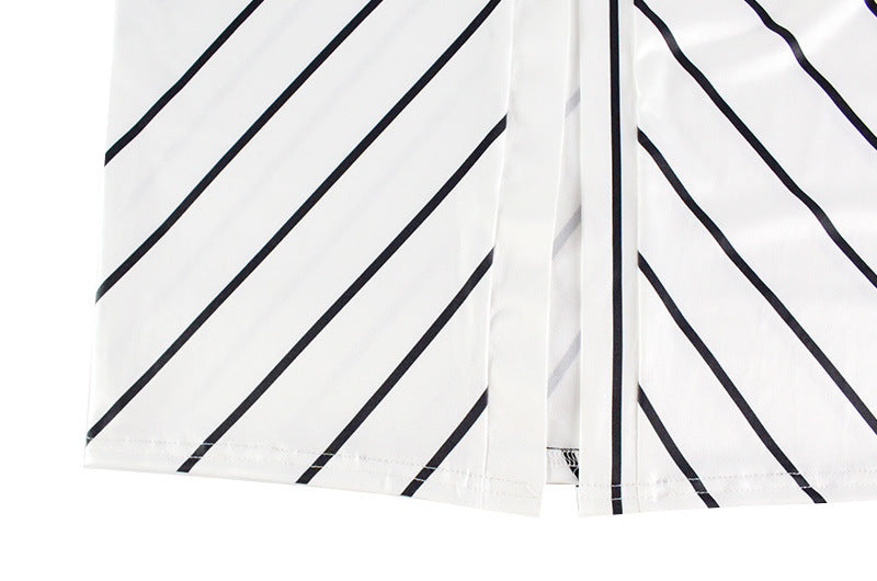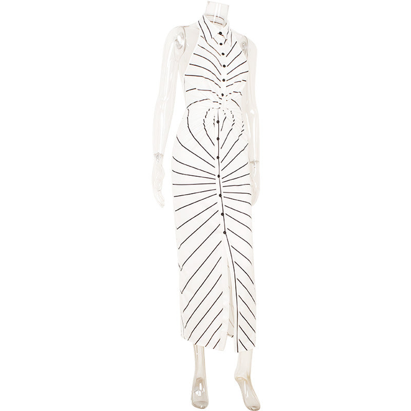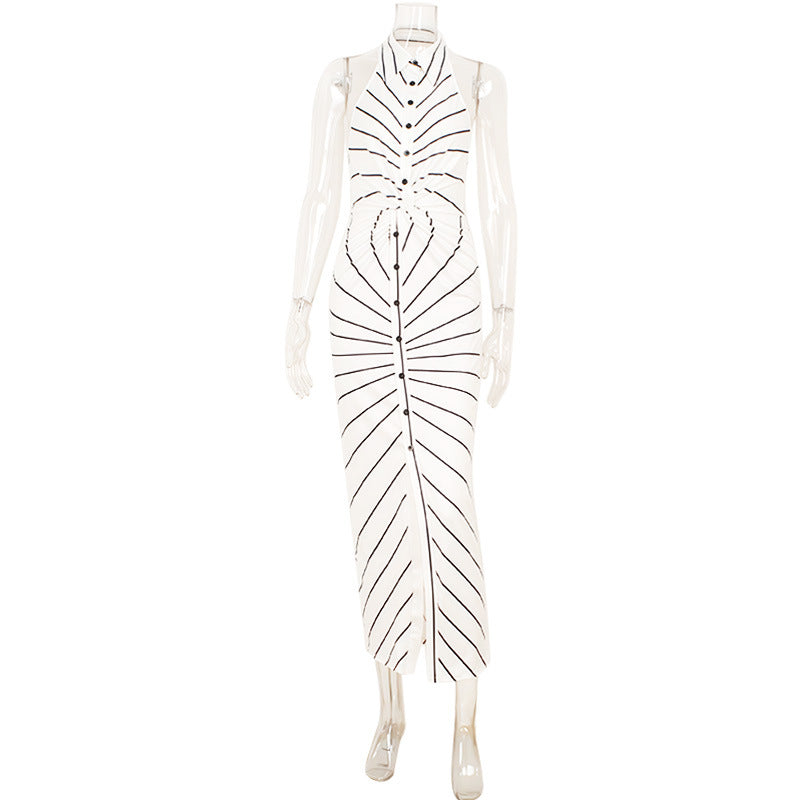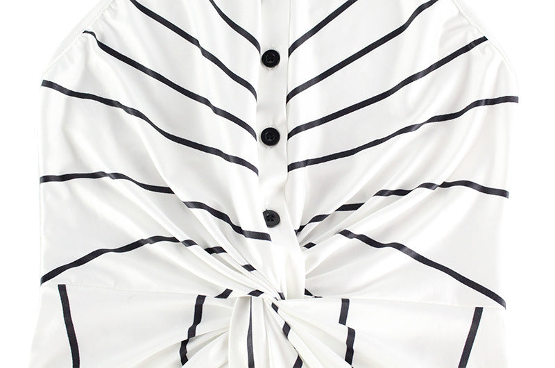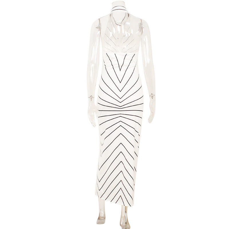 Striped Print V neck Halter Twist Fitted Waist Backless Formal Dress