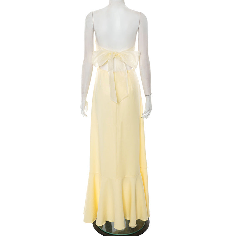 Tube Top Backless Lace up Ruffled Dress